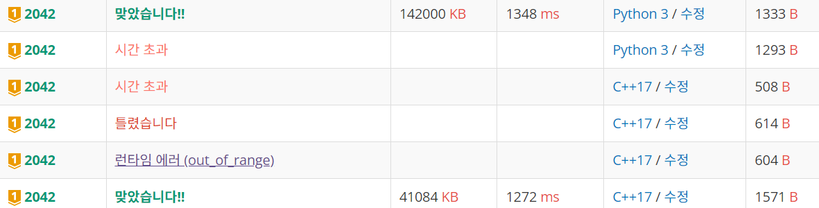 중간에 시간초과, 런타임 에러는 선형으로도 작성하여 실험해본 결과입니다.